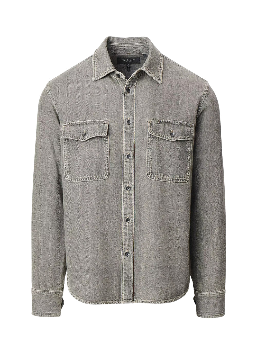 เสื้อเชิ้ตแขนเสื้อยาวผ้าเดนิมจากแบรนด์ rag & bone ตัดเย็บจากผ้า Ultra Featherweight เดนิมเนื้อบางเบาและนุ่มที่สุด ให้โครงสวยแต่สวมใส่สบายอย่างเป็นธรรมชาติในทุกสภาพอากาศ มาพร้อมเฉด Infuse Graphite Indigo ซึ่งเป็นการฟอกสีเฉดเทา-อินดิโกเข้มที่พัฒนาขึ้นพิเศษ “Infuse” เป็นเทคนิคการฟอกสีใหม่ของเราที่สร้างสีสันเข้มลึกหลายมิติ ผ่านกระบวนการย้อมและเก็บรายละเอียดขั้นสูง ชิ้นแฟชั่นสวมใส่สบายที่ตอบโจทย์ไลฟ์สไตล์เรียบง่ายแต่แฝงด้วยกลิ่นอายของความโมเดิร์น สามารถหยิบมาสวมใส่ได้หลากหลายโอกาสตั้งแต่โอกาสวันธรรมดาไปจนถึงนำไปเลเยอร์กับเสื้อเชิ้ตและกางเกงขายาวช่วยปรับเปลี่ยนลุคให้ทางการมากยิ่งขึ้น