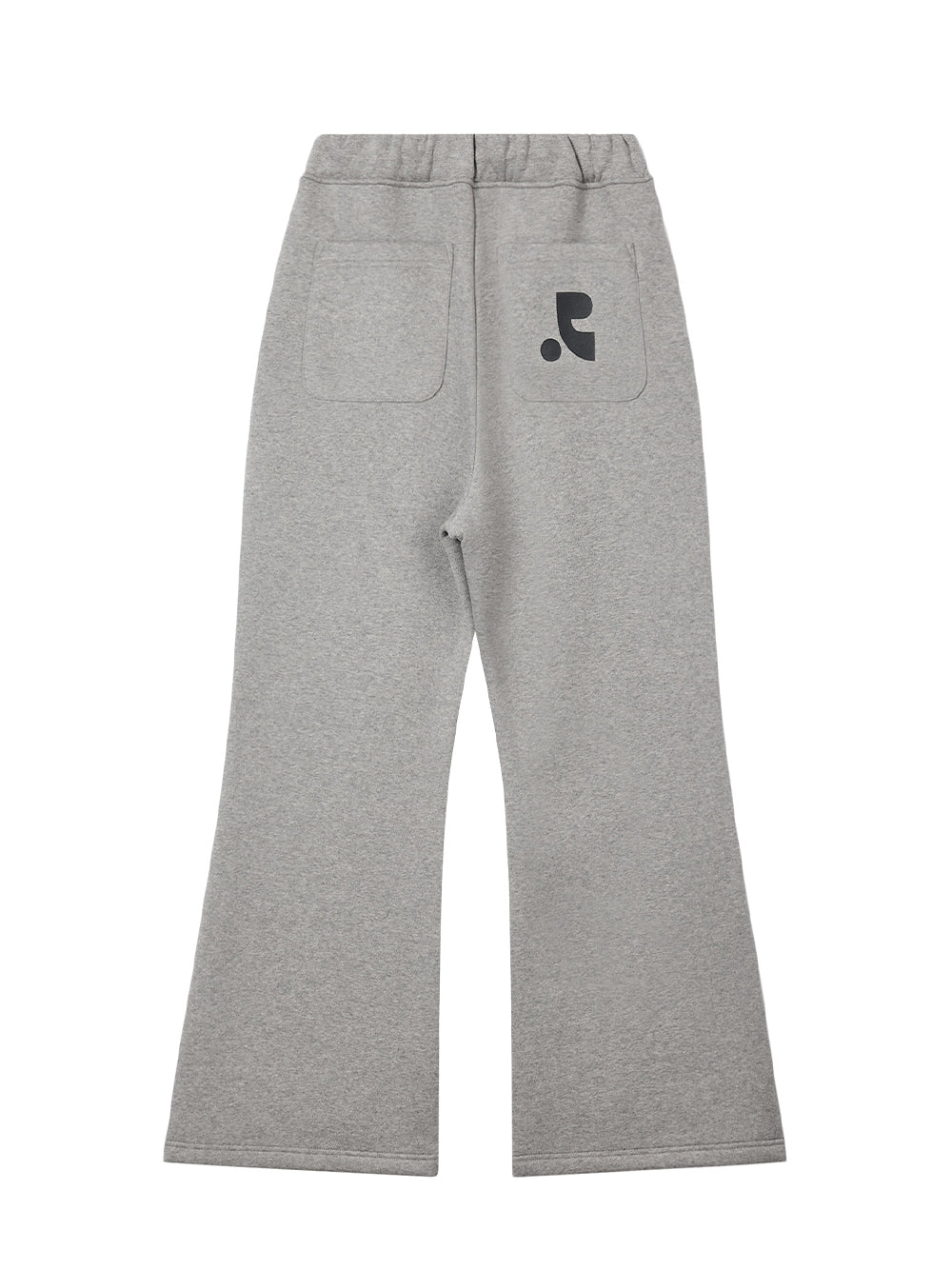 Flare Sweat Pants from REST & CREATION are crafted in a refined grey tone using a soft cotton-polyester blend with a smooth fleece lining for added comfort. Designed with a flexible waistband featuring a drawstring and stopper, the silhouette offers a clean flare fit enhanced by the signature RR symbol and lettering logo dyeing. For full material composition and garment care, please refer to the label inside the product.