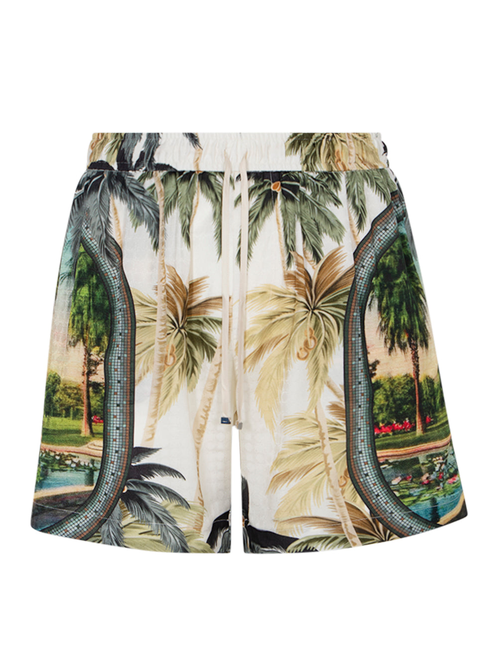 For Pre-Fall 2025, dreamlike visions of a California paradise take shape amid tropical palms. The Paradise Short is designed with an elastic waistband with drawcord.