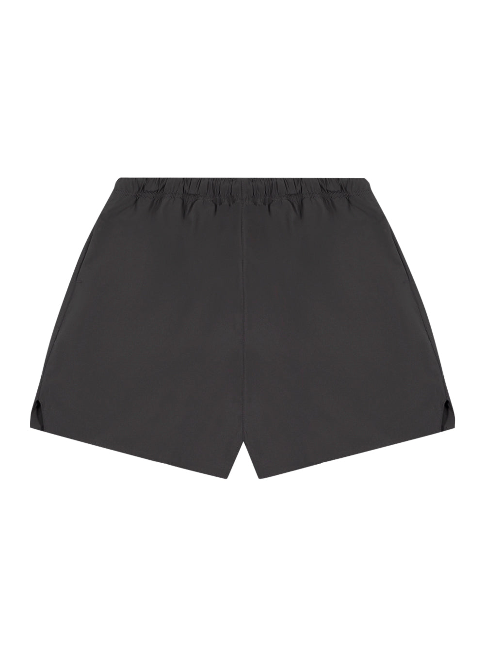 The Classic Short is crafted from a tech nylon-spandex blend, delivering stretch comfort. The leg is finished with a metallic 3M-printed “Essentials” logo, while refined details include an encased elastic waistband with elongated drawcords, side seam pockets, and a Fear of God Essentials rubberized label stitched at the center front.