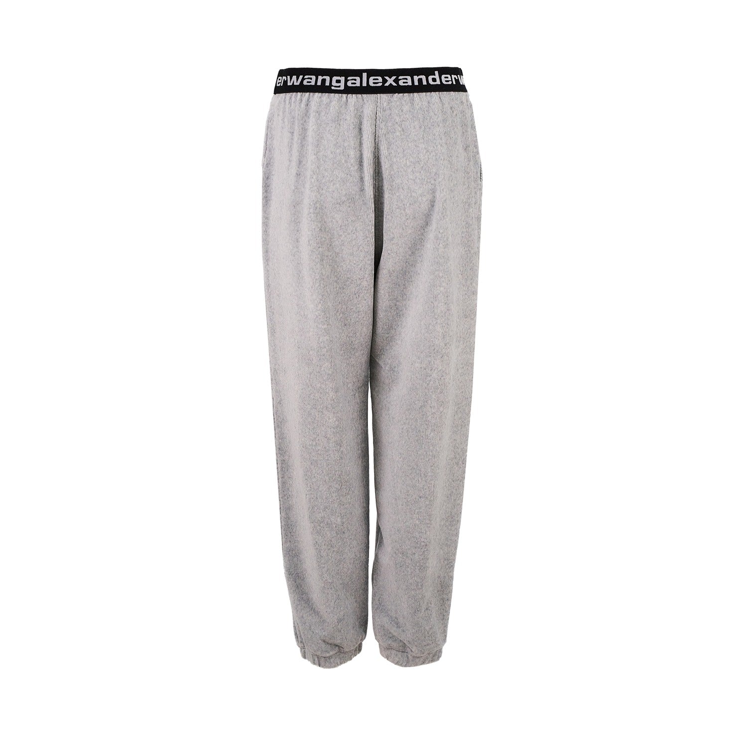 กางเกงสเวตแพนท์ผ้าลูกฟูกสีเทา ดีเทลขอบเอวยางยืดปักลายโลโก้ จาก Alexander Wang