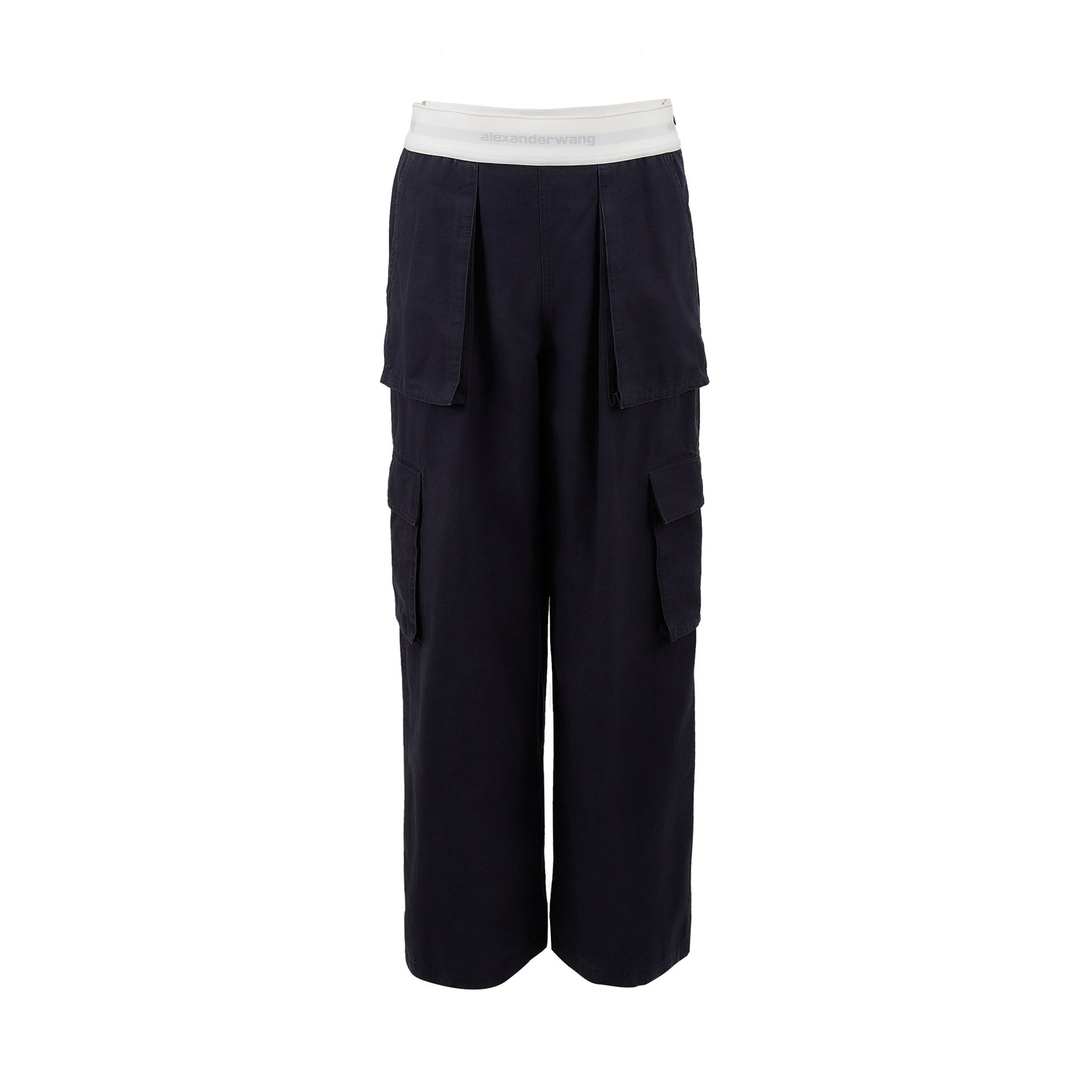 กางเกงขายาว ทรงคาร์โก แต่งดีเทลกระเป๋าข้าง โดดเด่นด้วยดีไซน์ขอบเอวยางยืดปักโลโก้ จาก Alexander Wang