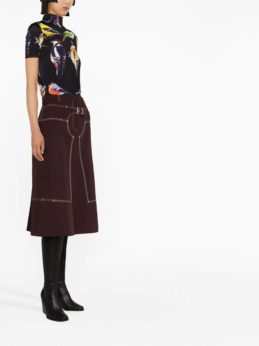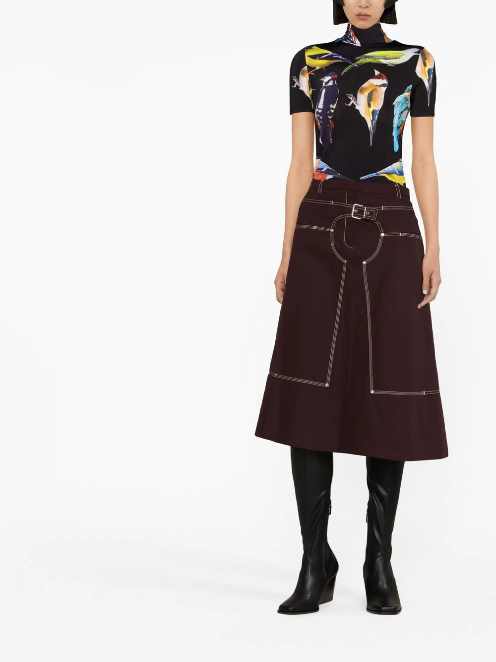 เสื้อยืดคอเต่า สำหรับคุณสุภาพสตรีตัวนี้ ตัดเย็บจากผ้าวิสคอส ที่เป็นมิตรกับสิ่งแวดล้อม และออกแบบให้สามารถปรับเพื่อกระชับตัวได้ โดดเด่นด้วยลายนกพื้นเมืองสีสันสดใส ที่มีสายพันธุ์ในประเทศอังกฤษ ตัดบนผืนผ้าสีดำ