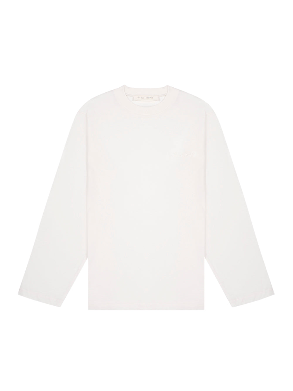 The Classic Long Sleeve Tee is made from medium-weight 100% cotton jersey. The rib-knit crewneck tee features a classic fit with signature Fear of God relaxed proportions for everyday wear. Branding includes an embroidered Essentials script logo on front and the Fear of God Essentials label at the back collar.