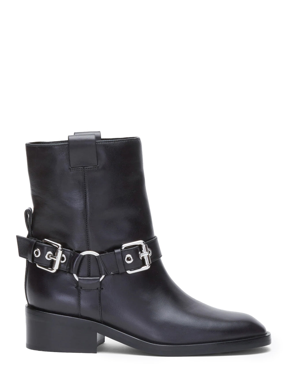 รองเท้าส้นสูงจากแบรนด์ 3.1 Phillip Lim พลิกโฉมรองเท้าบู๊ทคลาสสิกในมุมมองที่ดุดันและหรูหรา ตั้งอยู่บนพื้นรองเท้าเอกลักษณ์ของ Alexa ที่ขึ้นชื่อเรื่องความทนทานและสวมใส่สบาย รุ่นนี้ผลิตจากหนังลูกวัวเคลือบแว็กซ์ มอบสัมผัสโมเดิร์นและดูมีสไตล์ในแบบ lived-in ตัวรองเท้าช่วงข้อเท้านิ่มและทรงหย่อน เสริมความเท่แบบไม่พยายาม ขณะที่หัวเข็มขัดโลหะดีไซน์เด่น เติมกลิ่นอายสไตล์มอเตอร์ไซค์อย่างมีเอกลักษณ์ เหมาะสำหรับการแมตช์กับเดรสหวานหรือเลเยอร์แบบยูทิลิทาเรียน เพื่อให้ลุคสมดุลและลงตัว
