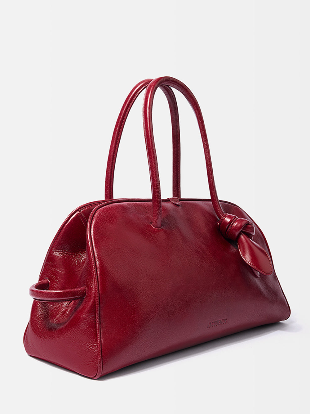 กระเป๋าทรงโบว์ลิ่งผู้หญิงจากแบรนด์ Jacquemus ทรงกระเป๋าสี่เหลี่ยมพร้อมดีเทลซิปรูดเปิดปิดกระเป๋า เสริมลูกเล่นด้วยโลโก้แบรนด์ฮาร์ดแวร์อะไหล่โทนสีเดียวกับตัวกระเป๋า หูหิ้วกระเป๋าที่มีจุดเด่นเป็นโบผูกปม และช่องกระเป๋าด้านใน แบรนด์แฟชั่นจากฝรั่งเศสที่โดดเด่นด้วยดีไซน์การออกแบบมินิมอลสุดเรียบง่ายแต่แฝงไว้ด้วยลูกเล่นการตัดเย็บสุดเนี๊ยบ มาพร้อมสีสดใสชวนให้นึกถึงหน้าร้อนทางตอนใต้ของฝรั่งเศส