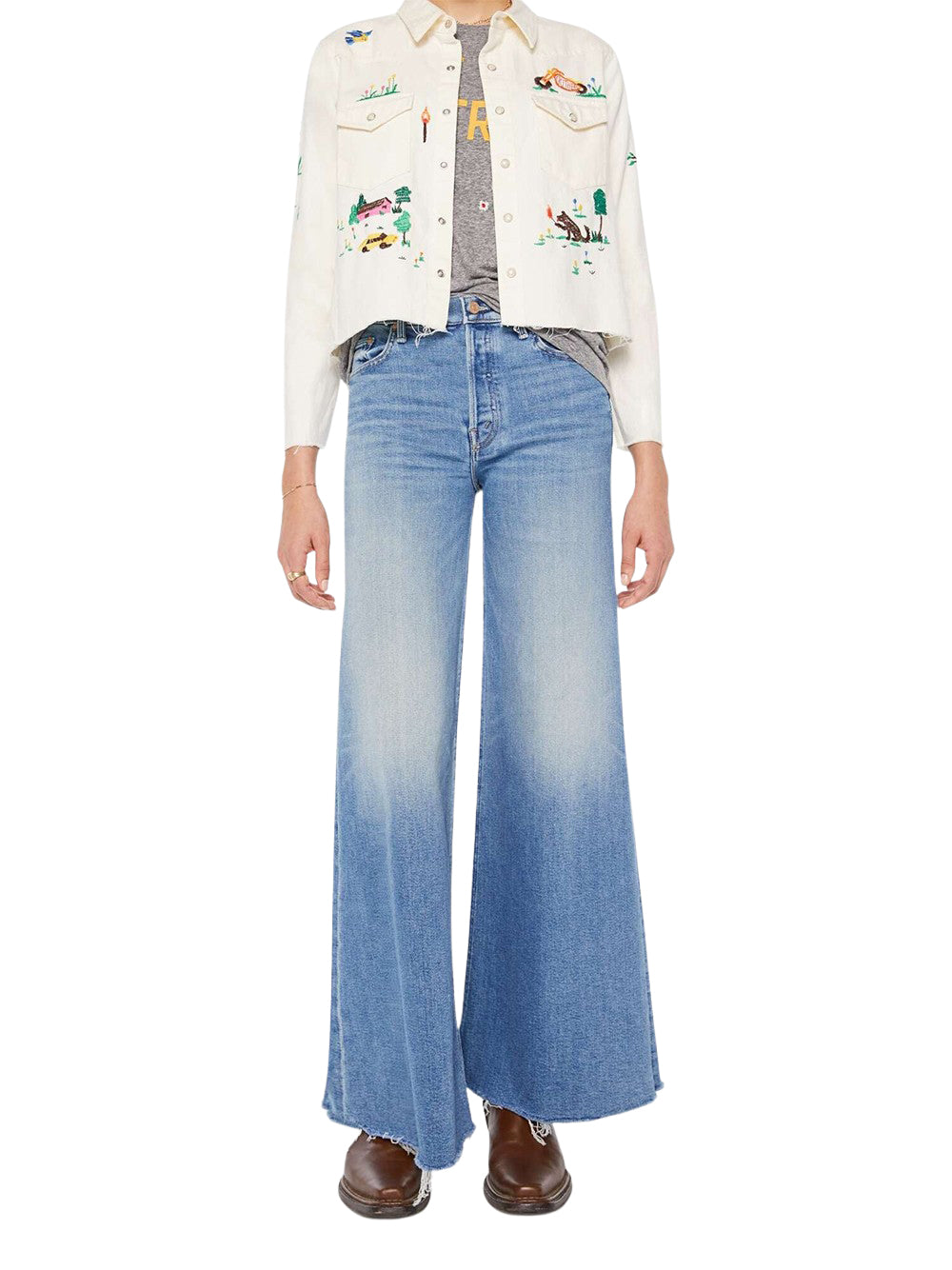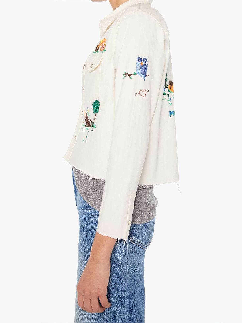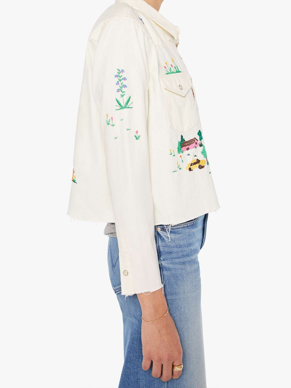 เสื้อแจ็คเก็ตแขนยาวจากแบรนด์ MOTHER เสื้อเชิ้ตเดนิมทรงตะวันตก มาพร้อมกระเป๋าแปะด้านหน้าและชายเสื้อตัดดิบทรงสั้น ผลิตจากผ้าคอตตอน 100% โทนสี Fired Up ขาวนวลประดับลายปักสีสันรอบตัว ตกแต่งด้วยกระดุมสแน็ปด้านหน้า ชิ้นแฟชั่นที่ได้แรงบันดาลใจจากไลฟ์สไตล์สุดรีแล็กซ์ตามแบบฉบับชาวแอลเอ (Los Angeles) สามารถหยิบนำมิกซ์แอนด์แมทช์เข้ากับเสื้อยืด หรือกางเกงขายาวสำหรับลุคแคชชวลในวันสบาย