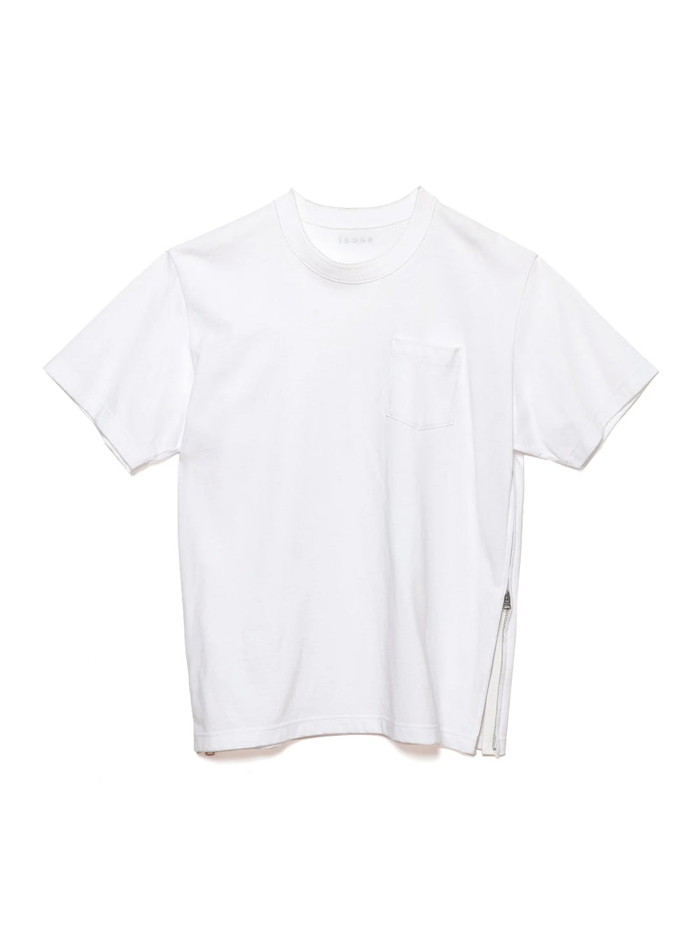 Side-Zip Jersey T-shirt from sacai featuring cotton jersey knit, logo print to the rear, crew neck, side zip fastening, short sleeves and chest patch pocket.