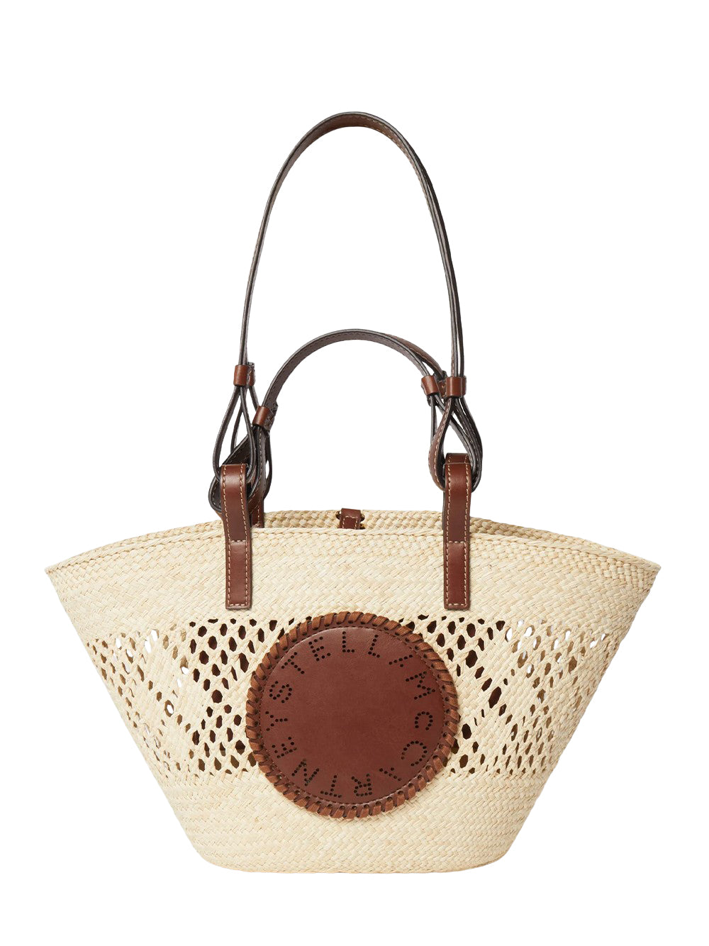 Our timeless Logo medium tote bag is reimagined for High Summer in renewable iraca palm straw, handwoven and crocheted in a fair-trade and safe workshop by female artisans in Colombia – keeping traditional skills alive while protecting our planet for tomorrow. Iraca palm is an incredibly durable, easy-to-grow plant that supports soil health and absorbs greenhouse gasses. The luxury vegan bag is hand-finished in Italy with a Stella McCartney logo, embroidered on the front, and lined with soft organic cotton.