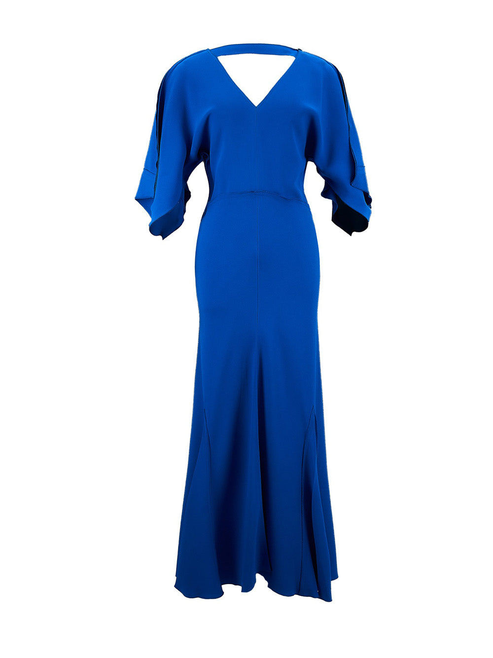 ชุดเดรส สีน้ำเงิน รุ่น V-nack Bias Godet Dress ทรงเข้ารูปพอดีตัว