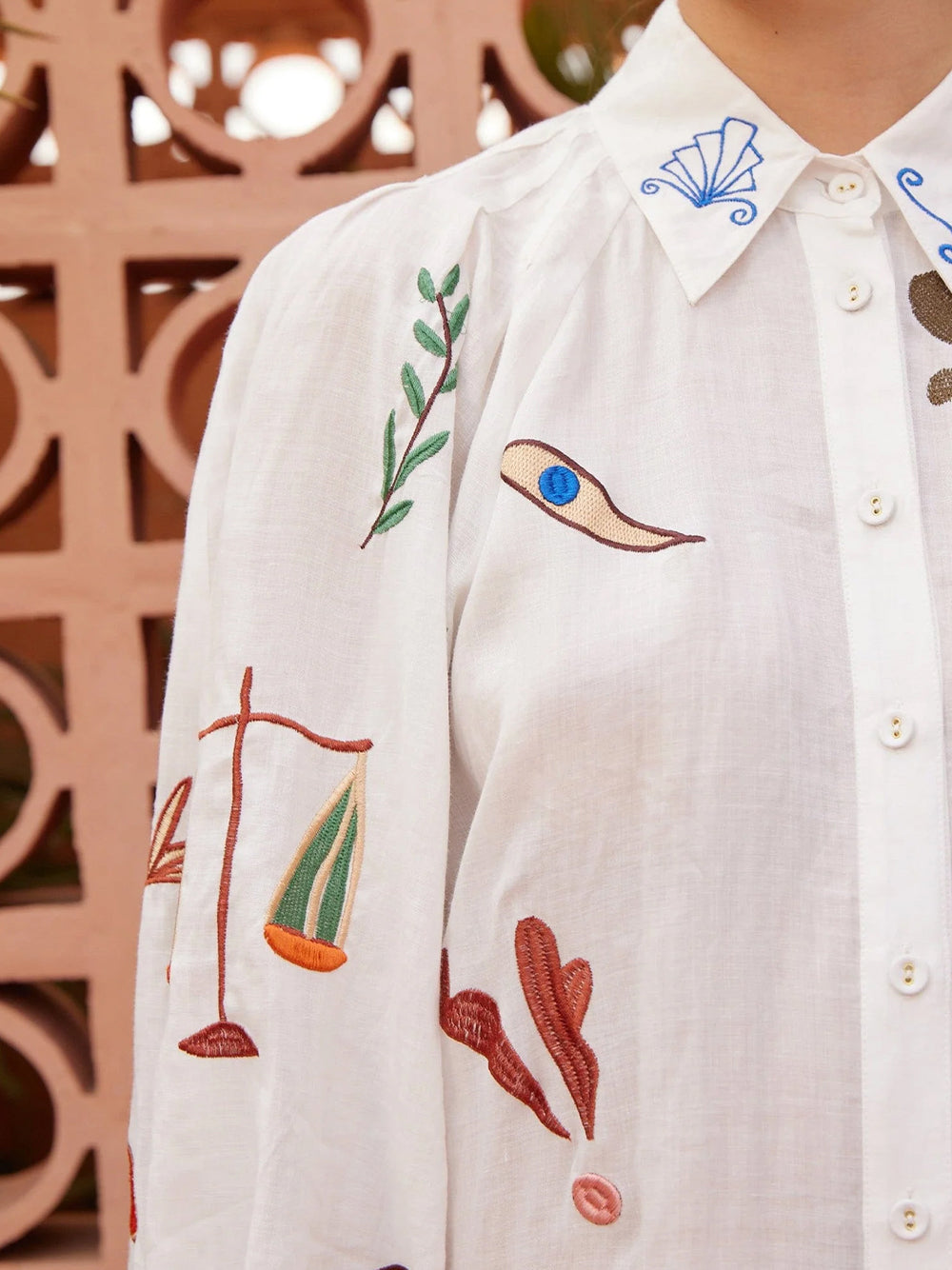 Mina Embroidered Shirtdress Cream