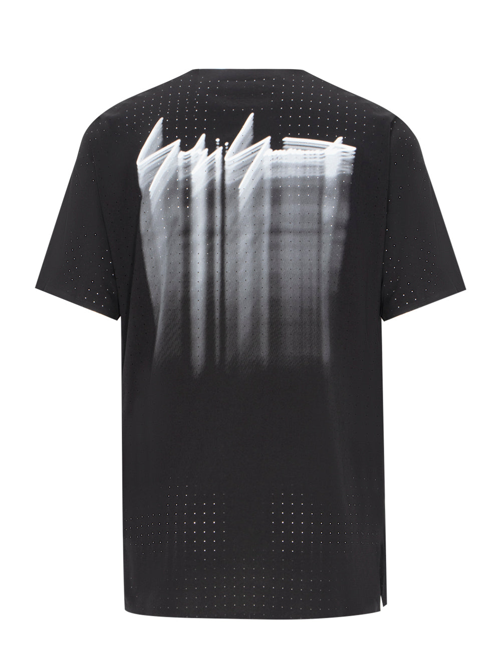 Mixing the best of fashion and function, the Y-3 Running Short Sleeve Tee is built for movement. It's woven from a recycled polyester fabric that has built-in stretch for easy wear. A polyurethane coating helps wick away water, and a crewneck keeps the fit feeling right. Side slits on the droptail hem open up the freedom to move. The finishing touch: Yohji Yamamoto's signature across the back in a reflective print that stands out when light is low.