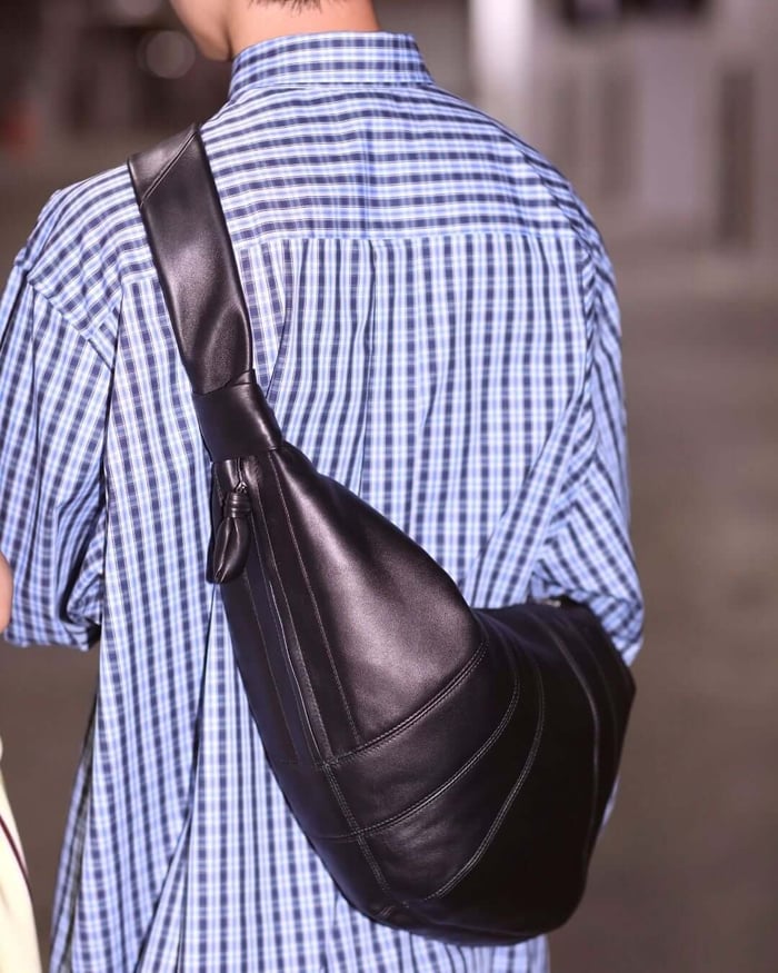 LEMAIRE Large Croissant Bag (Dark Chocolate) กระเป๋าสะพายไหล่ทรงซิกเนเจอร์ไซส์ใหญ่สำหรับผู้หญิงจากแบรนด์ LEMAIRE สะท้อนเสน่ห์ร่วมสมัยในแบบปารีเซียงอย่างลงตัว ซิกเนเจอร์สำคัญของแบรนด์ กระเป๋าที่โดดเด่นด้วยดีไซน์อเนกประสงค์และความนุ่มนวล ได้แรงบันดาลใจจากรูปทรงขนมอบฝรั่งเศส โดยใช้เทคนิคการตัดต่อแผ่นหนังแบบเดินตะเข็บผสานกับรายละเอียดปมที่เป็นเอกลักษณ์ กระเป๋าขนาดใหญ่ทำจากหนังแกะนัปป้าที่มีความนุ่ม เรียบลื่นและเงางามตามธรรมชาติ มาพร้อมการรับรองมาตรฐาน LWG Gold โดดเด่นด้วยโครงสร้างที่พิถีพิถัน เส้นสายพลิ้วไหว และโทนสีอ่อนนุ่มเหนือกาลเวลา 100% หนังแกะ 100% ซับในผ้าฝ้าย ขนาด : สูง 28 x กว้าง 60 x ลึก 17 (ซม.) สายสะพาย : 86 (ซม.)… read more