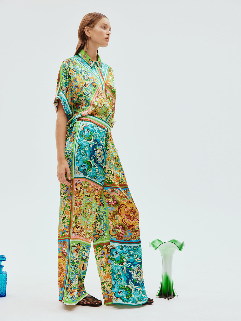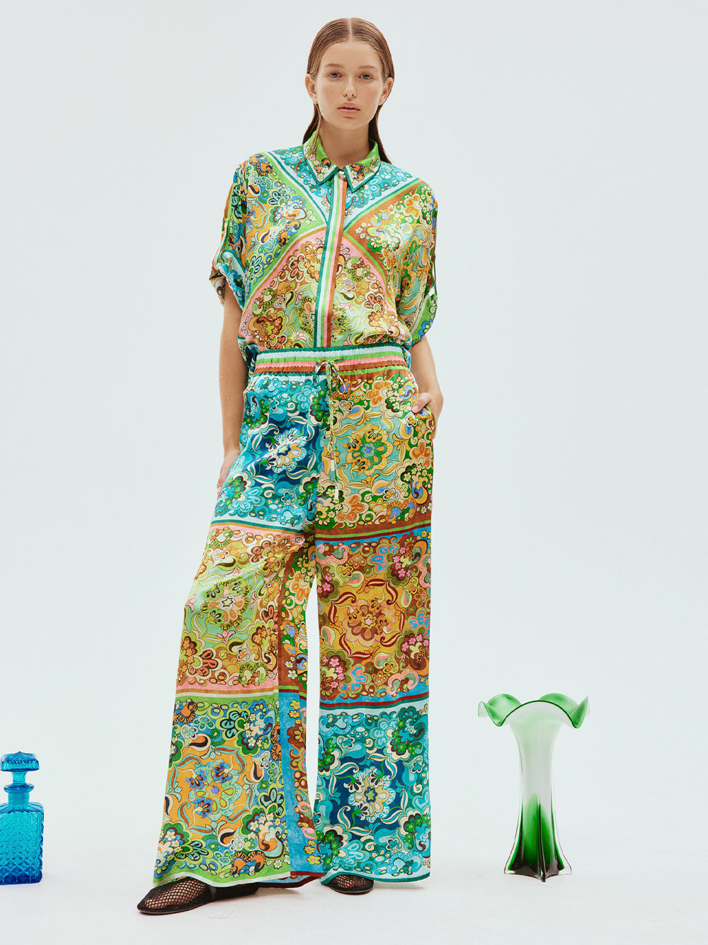 กางเกงขายาวสวมใส่สบายจากแบรนด์ ALÉMAIS ดีเทลเอวกางเกงยางยืดพร้อมเชือกผูก โดดเด่นด้วยลายพิมพ์ดอกไม้ และกระเป๋ากางเกง ไอเทมสวมใส่สบายที่ผสมผสานศิลปะเสื้อผ้าเข้ากับปรัชญาความตั้งใจของแบรนด์ที่ห่วงใยในสิ่งแวดล้อม นำไปแมทช์กับเสื้อเชิ้ตแขนสั้นพิมพ์ลายเข้าเซ็ท หรือเสื้อยืดแขนสั้นสีขาวช่วยคอมพลีทแฟชั่นแคชชวลสุดชิคของคุณให้โดดเด่น