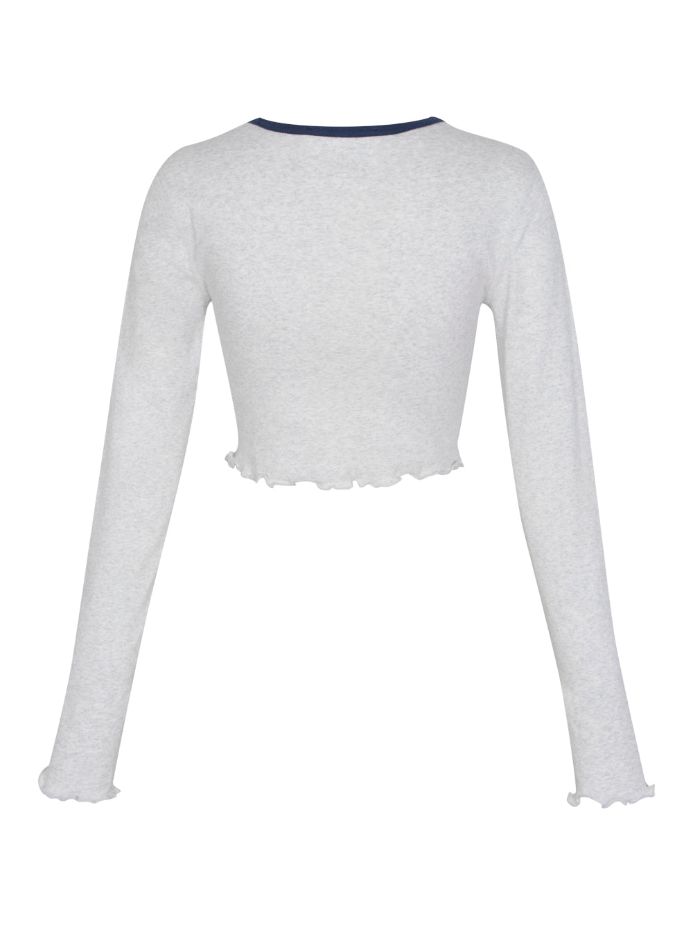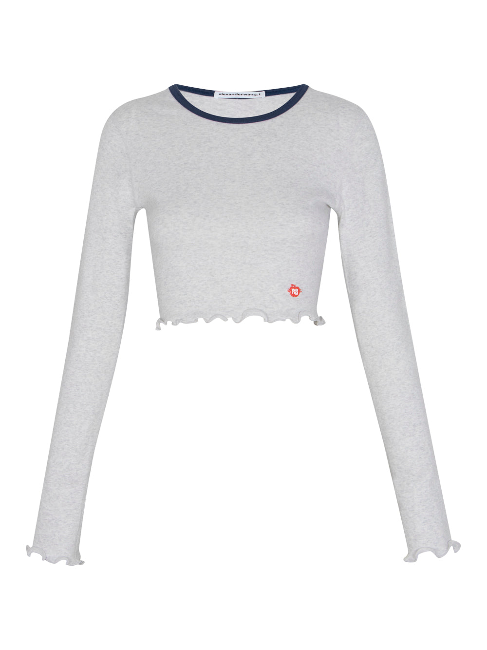 เสื้อแขนยาว สี Light Heather Grey รุ่น Lettuce Hem Mircro Rib Jersey Baby Tee ผลิตจากผ้าคอตตอน สัมผัสนุ่มสบาย ทรงครอปสั้น คอกลม แขนยาว ตกแต่งโลโก้แอปเปิ้ลบริเวณชายเสื้อ