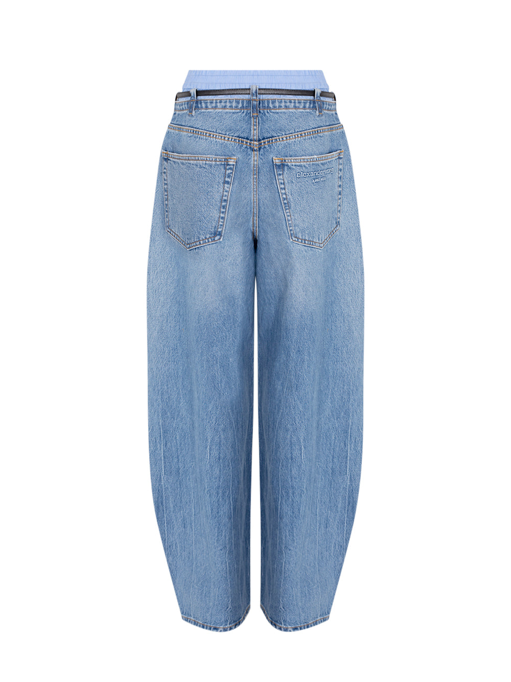 กางเกงเดนิมขายาวจากแบรนด์ Alexander Wang เอวระดับกลางดีไซน์เข็มขัดและบ็อกเซอร์ในตัว มาในทรงโอเวอร์ไซส์ขนาดใหญ่พิเศษ พร้อมดีเทลตะเข็บด้านข้างแบบบิด ช่วยเสริมให้ทรงขากางเกงดูพองสวยมีมิติ แบรนด์แฟชั่นสตรีทสุดขบถที่ผสมผสานระหว่างภาพลักษณ์ของหญิงสาวที่แข็งแกร่งเข้ากับความไม่สมบูรณ์แบบได้อย่างลงตัวพร้อมจะให้คุณมิกซ์แอนด์แมตช์ครีเอทลุคที่ไม่ซ้ำใครได้ในทุกวัน