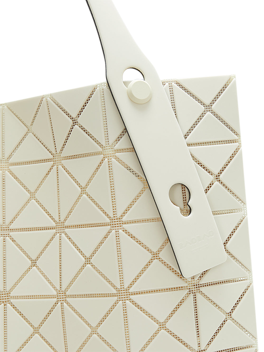 กระเป๋าถือจากแบรนด์ BAO BAO ISSEY MIYAKE รุ่น PRISM พร้อมฐานกระเป๋าที่สามารถขยายได้ (Gusset) ผลิตจากวัสดุพื้นผิวลายเสมือนเนื้อผ้า โดดเด่นด้วยการออกแบบชิ้นทรงสามเหลี่ยม ตาข่าย และอะไหล่โลหะที่คุมโทนสีเดียวกันอย่างลงตัว ตัวกระเป๋าสามารถพับเก็บด้านข้างให้แบนราบได้คล้ายถุงช้อปปิ้ง และจะขยายตัวเมื่อบรรจุสิ่งของ แม้ดีไซน์จะดูคอมแพ็กต์กว่ารุ่นอื่นในซีรีส์ PRISM แต่ยังคงมีความจุใกล้เคียงกัน