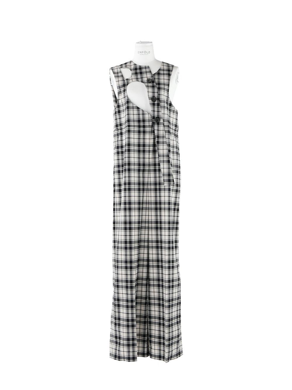 จัมพ์สูทขายาวจากแบรนด์ ENFÖLD ดีเทลคอเสื้อกลม ลายพิมพ์ตารางพร้อมแถบกระดุมติดด้านหน้า โดดเด่นด้วยเทคนิคคัตเอาท์ตัดขาดบริเวณตัวเสื้อและกระเป๋าด้านข้าง ไอเทมดีไซน์คลาสสิคไร้กาลเวลาที่ถูกออกแบบโดยได้แรงบันดาลใจจากซิลลูเอทเสื้อผ้าที่สามารถสวมใส่ได้ในทุกวาระโอกาส ไม่ว่าจะเป็นวันทำงาน วันธรรมดาหรือโอกาสทางการสุดพิเศษ สามารถหยิบนำไปแมทช์กับรองเท้า และเครื่องประดับช่วยคอมพลีทแฟชั่นนอร์มคอร์คลาสสิคของคุณให้สมบรูณ์
