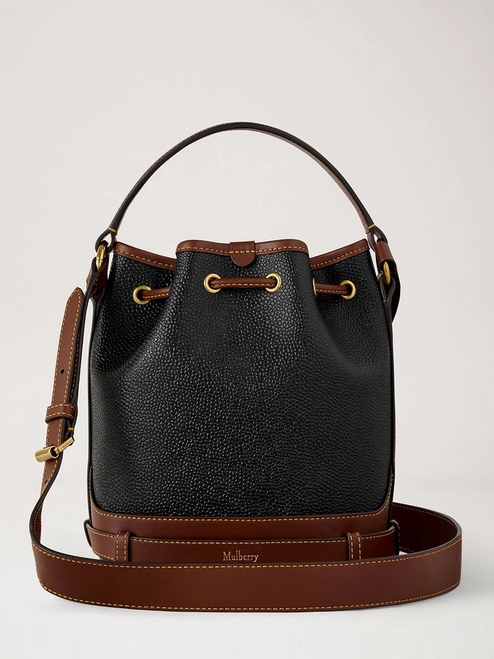 กระเป๋าสะพายทรงบักเก็ตจากแบรนด์ Mulberry โดดเด่นด้วยความทนทาน ขนาดกว้างขวางสำหรับการใช้งานในชีวิตประจำวัน พร้อมสายสะพายที่สามารถปรับระดับได้เพื่อการใช้งานหลากหลายรูปแบบ กระเป๋าทรงบักเก็ตใบนี้ผลิตจากวัสดุ Scotchgrain ชนิด Bio-Based ที่มีพื้นผิวสัมผัสเฉพาะตัว แข็งแรง และเป็นมิตรต่อสิ่งแวดล้อม โดยพัฒนาจากวัสดุรีไซเคิลและวัสดุชีวภาพ แบรนด์เครื่องหนัง Luxury สัญชาติอังกฤษที่โดดเด่นด้วยการออกแบบร่วมสมัยแต่ยังคงไว้ซึ่งกลิ่นอายสไตล์ British Heritage