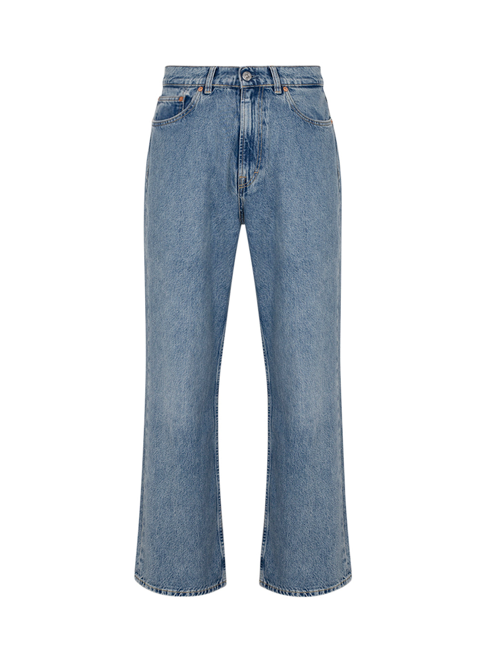 กางเกงเดนิมขายาวจากแบรนด์ OUR LEGACY ผลิตจากผ้าเดนิมอิตาลีผ่านกระบวนการฟอกแบบวินเทจ มอบทรงหลวมสบาย ขากว้างทรงตรง ดีไซน์สำหรับผู้ชาย โดดเด่นด้วยซิปหน้า YKK หมุดโลหะ และกระเป๋าหลังเสริมความแข็งแรงเพื่อการใช้งานที่ทนทาน แบรนด์ที่โดดเด่นด้วยการผสมผสานงานออกแบบสแกนดิเนเวียนเข้ากับวัสดุที่พัฒนาขึ้นมาเอง โดยเน้นคุณภาพ ความเรียบง่าย และการทดลองเชิงสร้างสรรค์มากกว่าการไล่ตามเทรนด์