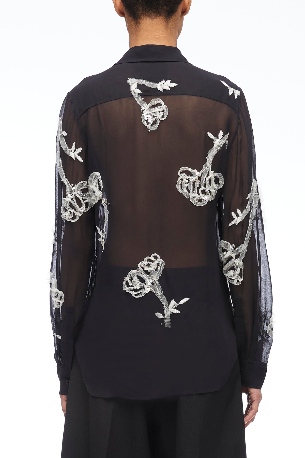 Deconstructed Floral Chiffon Shirt (Midnight Multi)