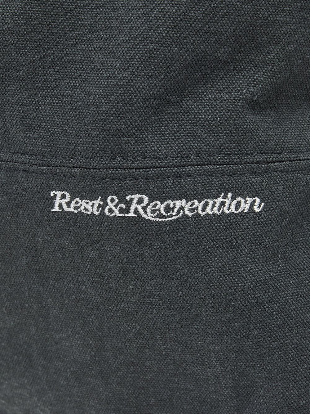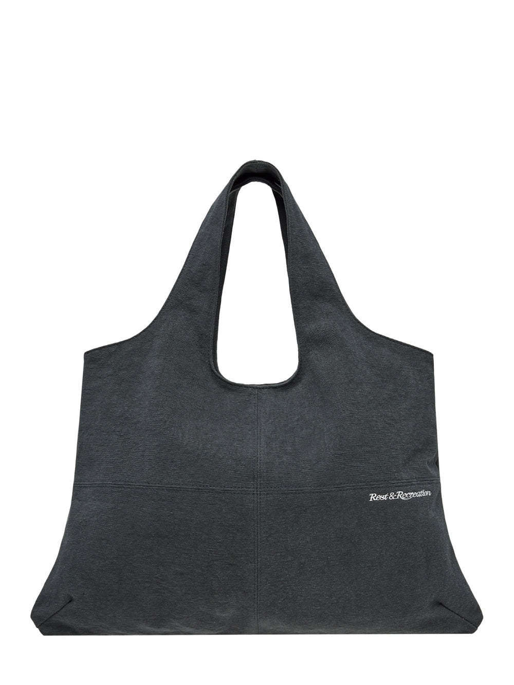 กระเป๋าสะพายไหล่จากแบรนด์ REST & RECREATION ดีไซน์กระเป๋าขนาดใหญ่ ดีเทลลายปักโลโก้แบรนด์บริเวณตัวกระเป๋า ปากกระเป๋าเปิดพร้อมแม่เหล็กเปิดปิดกระเป๋า ช่องบรรจุสัมภาระขนาดใหญ่ และหูหิ้วกระเป๋าสำหรับสะพายไหล่
